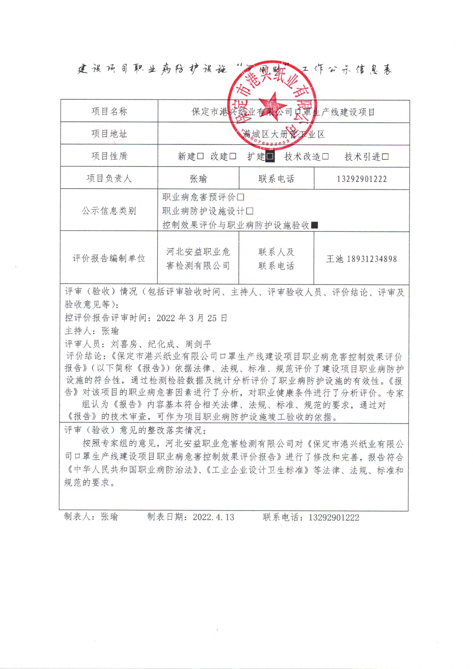 建設(shè)項目職業(yè)病防護設(shè)施工作公示信息表